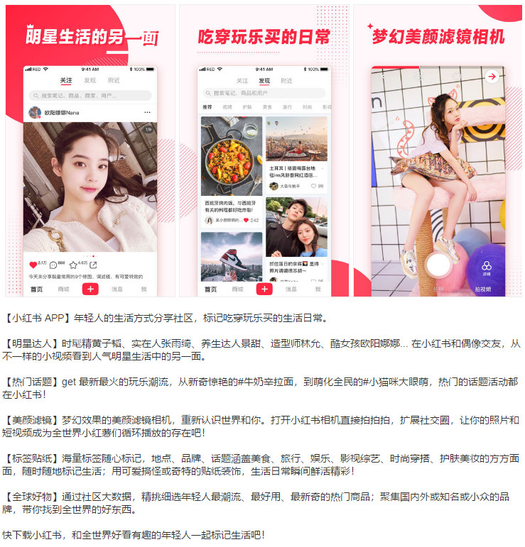应用商店对于一个app应用介绍,是用户对于产品的第一印象。这一介绍对产品的主要特点进行了精炼与概括,我们可以通过应用介绍来提炼出产品最为重要和核心的功能,以此来分析产品到底从那些方面解决了用户什么样的需求。本文便是结合软件的应用介绍,对小红书进行了一个简要的分析。