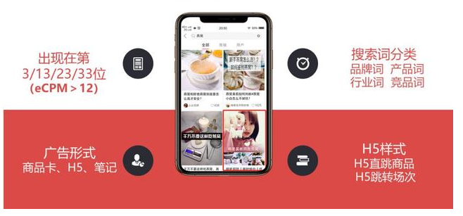 搜索广告主要出现在第3/13/23/33位,建议搜索广告的eCPM大于12才能跑出去量。