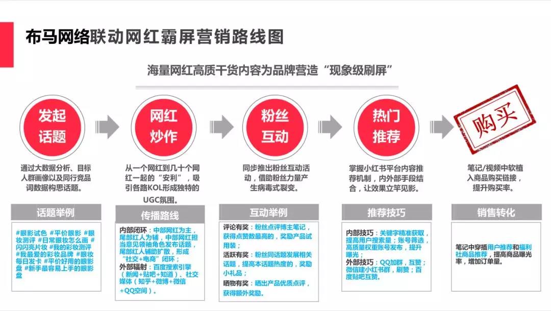 布马网络总结了大量的推广案例和经验,提出了小红书推广营销的三个路线。